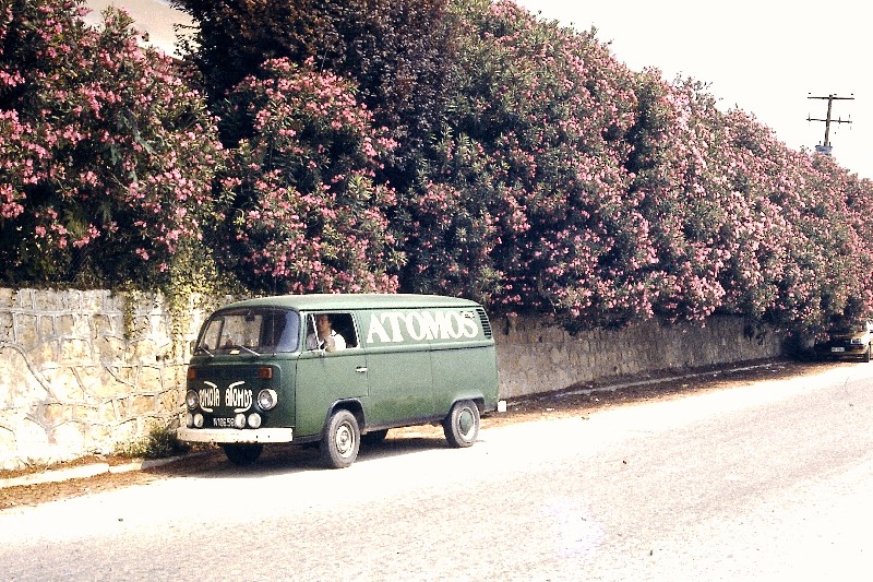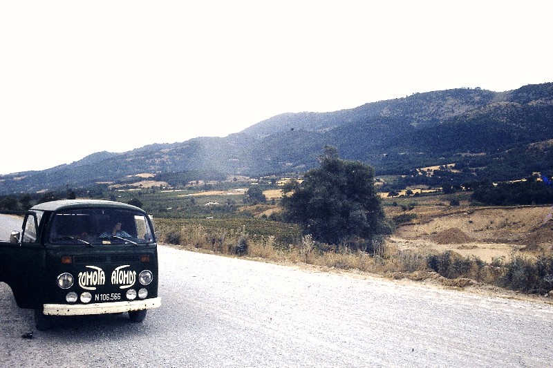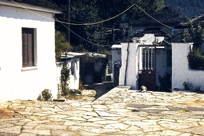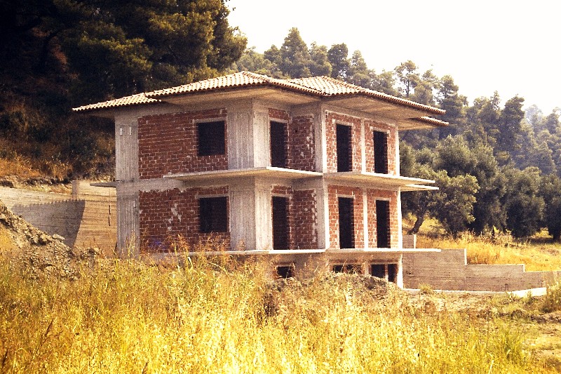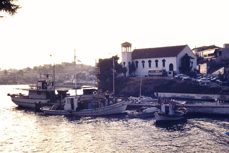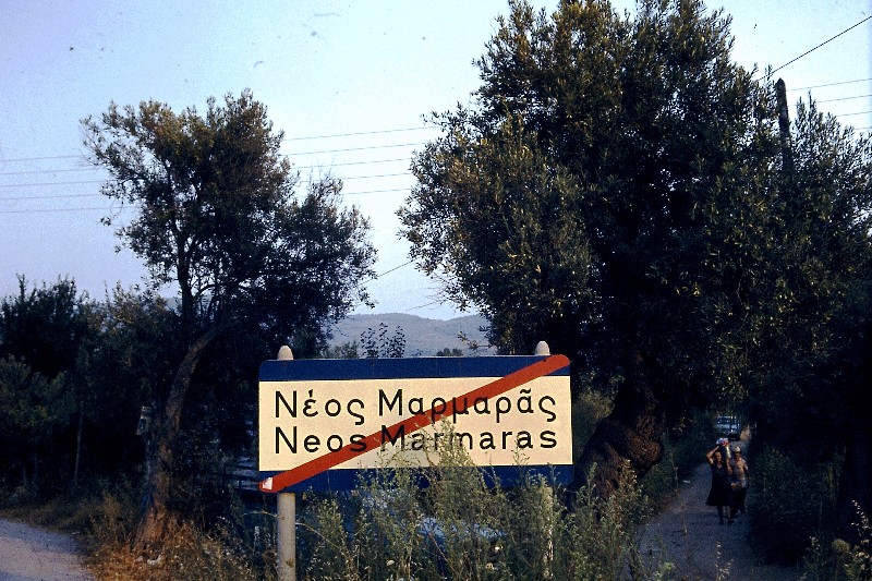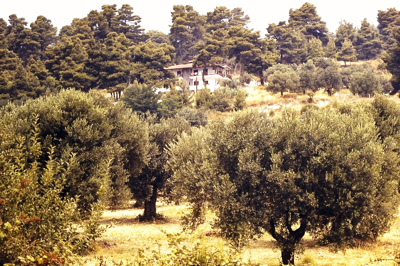 um den Berg Athos.Strenge Gesetze gelten dort. Unter anderem ist Frauen der Zutritt zur Mönchsrepublik untersagt. Selbst Männer müssen um eine Einreisegenehmigung ansuchen. Sithonia ist die landschaftlich schönere und romantischere der beiden Halbinseln, die wir besucht haben. Wahrscheinlich entsteht dieser Eindruck dadurch, weil Sithonia gebirgiger als Kassandra ist. Nach längerer Fahrt ohne auch nur ein Haus haben wir dann endlich ein Dorf gefunden.