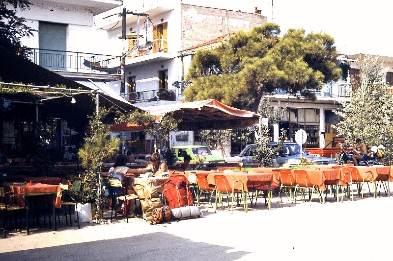 84/II/19 Der Hauptplatz von Sarti mit vielen Tavernen