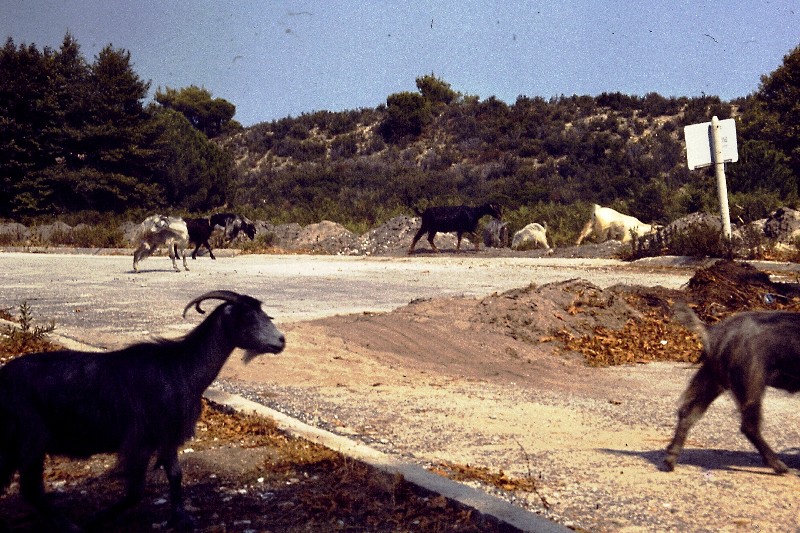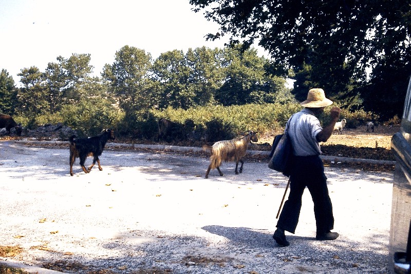 84/II/23 Ein Ziegenhirte kreuzt mit seinder Herde unsere Straße